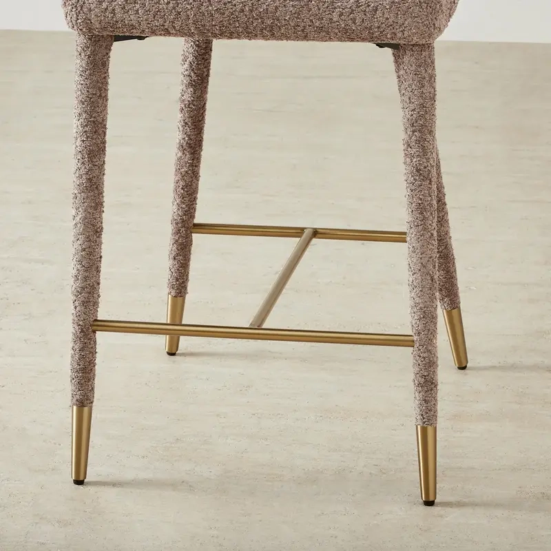 Designed for counter-height seating, the Moulin features an open-back design that adds a light, airy feel while offering relaxed support. Tapered legs with champagne gold metal tips complete the look with a subtle, polished touch.