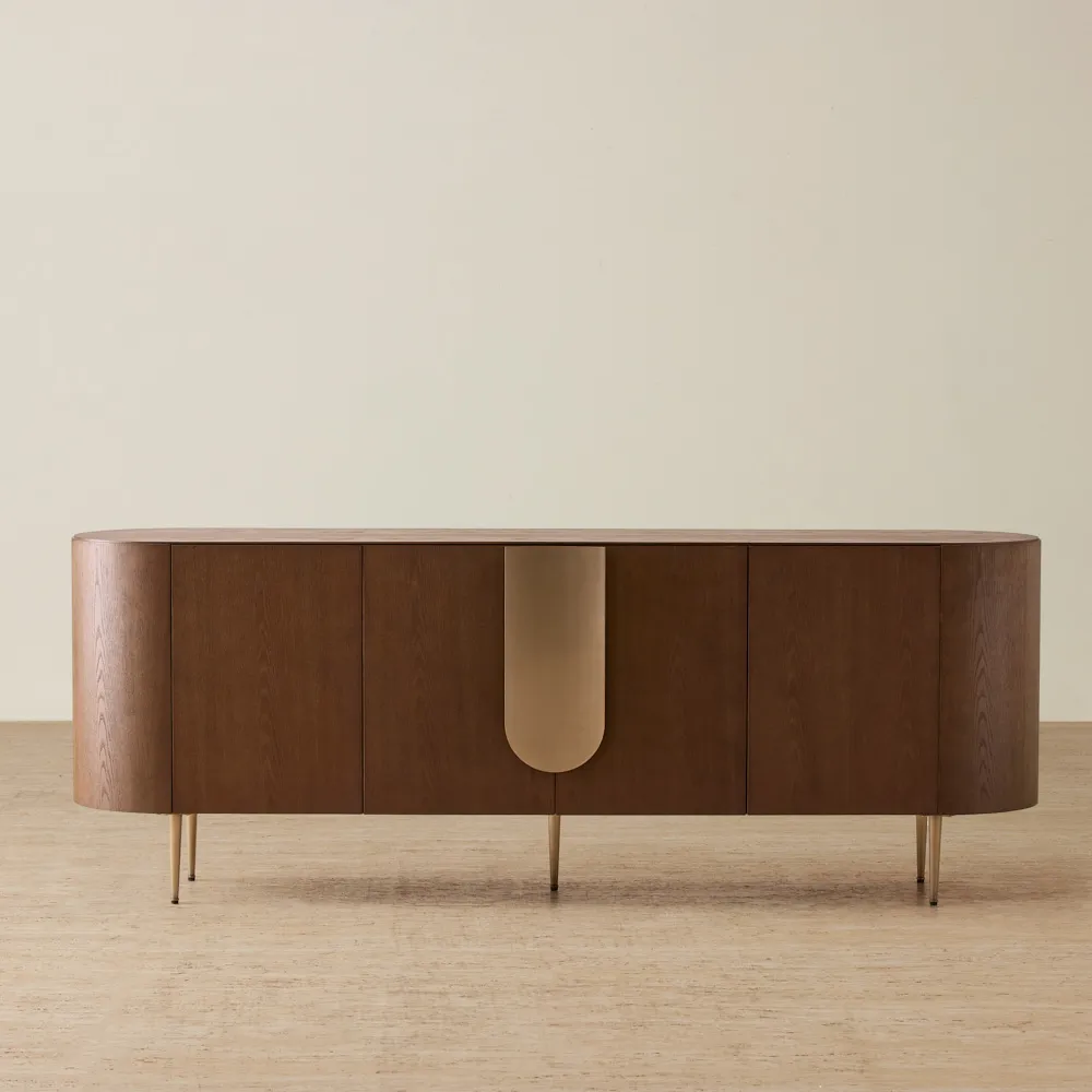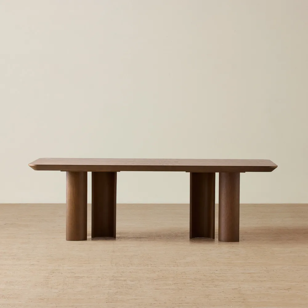 Beneath, sculptural oak supports create a creative interplay of solid forms, giving the table depth and architectural interest. The sturdy base grounds the design while maintaining visual flow.