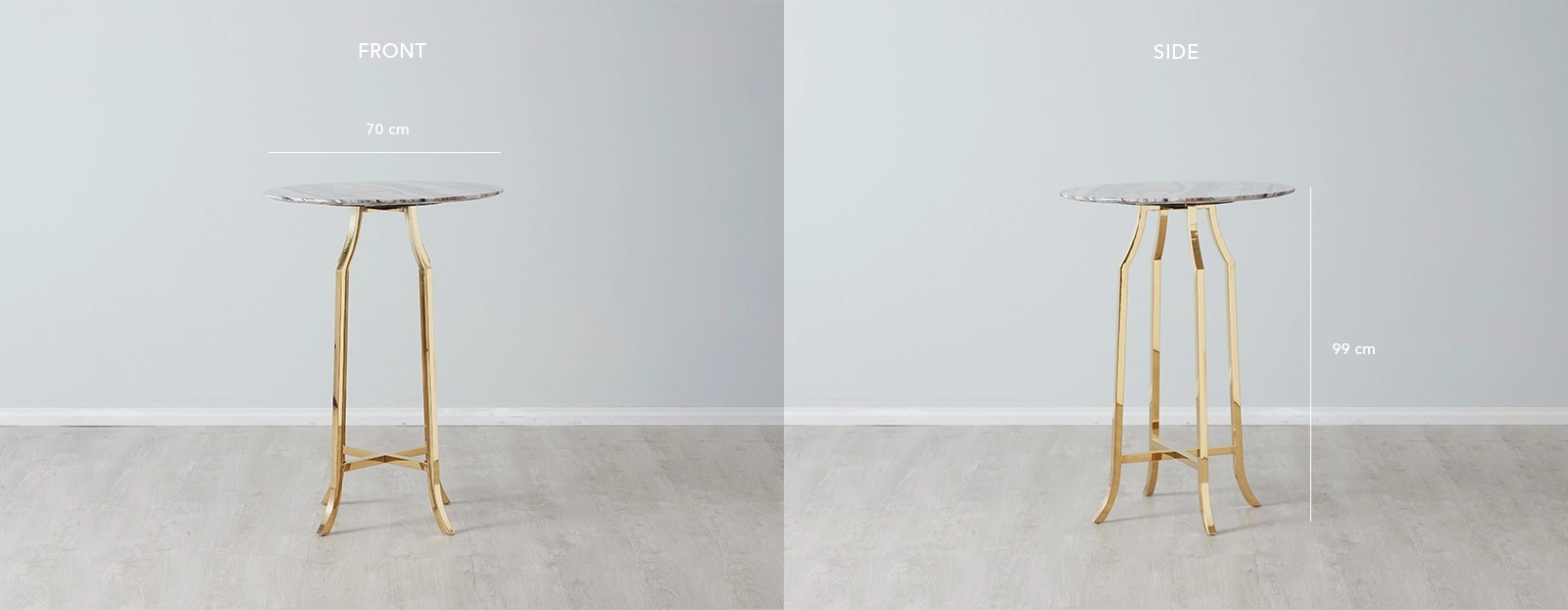 The Odessa Bar Table features a stunning circular form that brings a sense of balance and elegance to any space. Its sleek gold legs and frame add a touch of glamour, making it a striking centrepiece for your home bar.