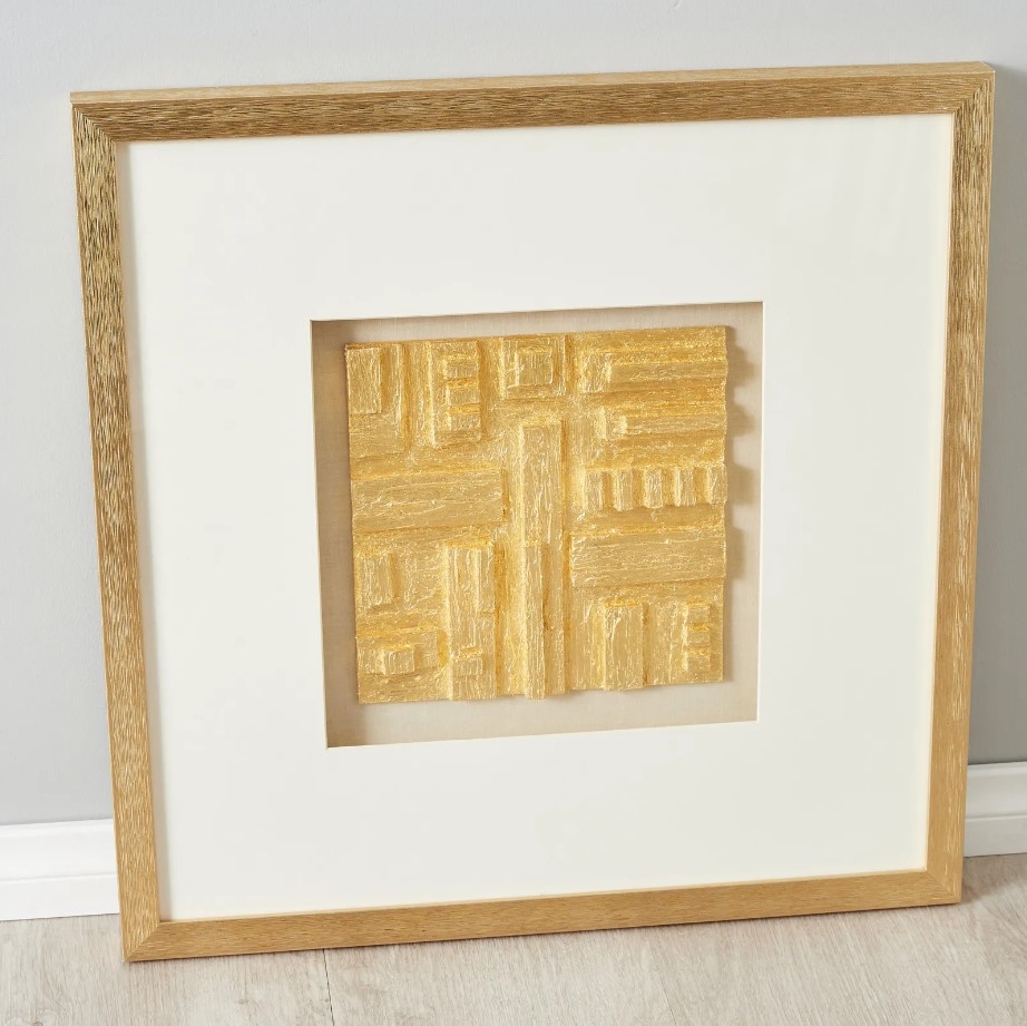 The Ophir Shadow Box with Golden Frame is a luxurious and intricately designed artwork that marries the elegance of gold with the textured depth of linen and papercards. This stunning piece is a testament to the art of layering and texture, creating a visual spectacle that demands attention and admiration.