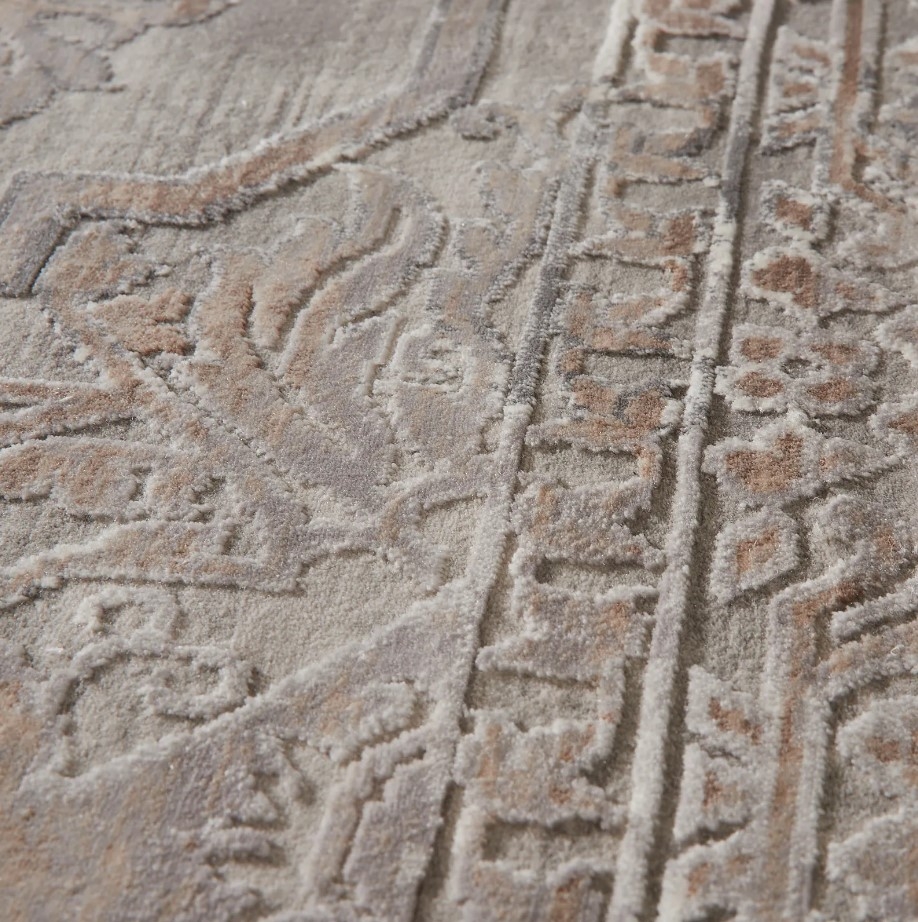 The Penelope Floor Rug is the epitome of understated elegance, its surface a canvas where botanical symbols and ornamental flourishes come together in a symphony of design. This stunning rug showcases a patterned motif in soothing shades of beige and white, with thoughtful highlights of grey that add a touch of depth and sophistication.