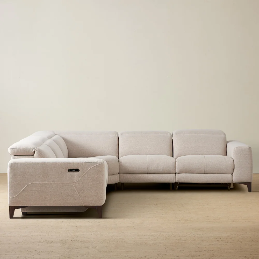 The Pierce Shadow White Woven Fabric Corner Electric Recliner blends modern design with comfort. Its fine curves and angles create a stylish look, enhanced by the elegant white woven fabric. The true appeal lies in its promise of unparalleled comfort.