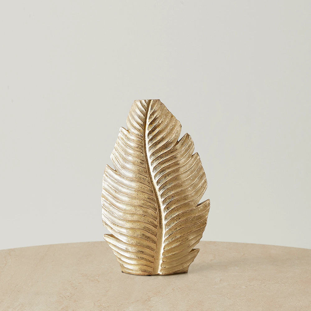 The Platano Leaf Gold Resin Vase is a sublime fusion of nature-inspired design and exquisite craftsmanship. Painstakingly molded from high-quality resin, this piece captures the intricate details and the graceful structure of the platano leaf, standing vertically in all its glory.