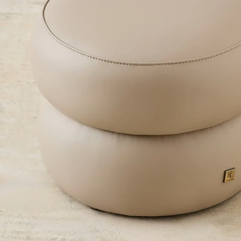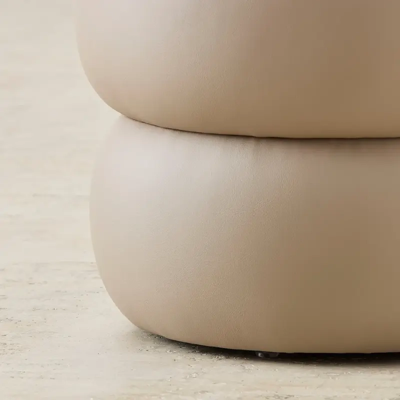 The Polly Play Stool features soft vegan leather that’s gentle for little hands. Its rounded, stacked form gives it a fun, friendly presence.