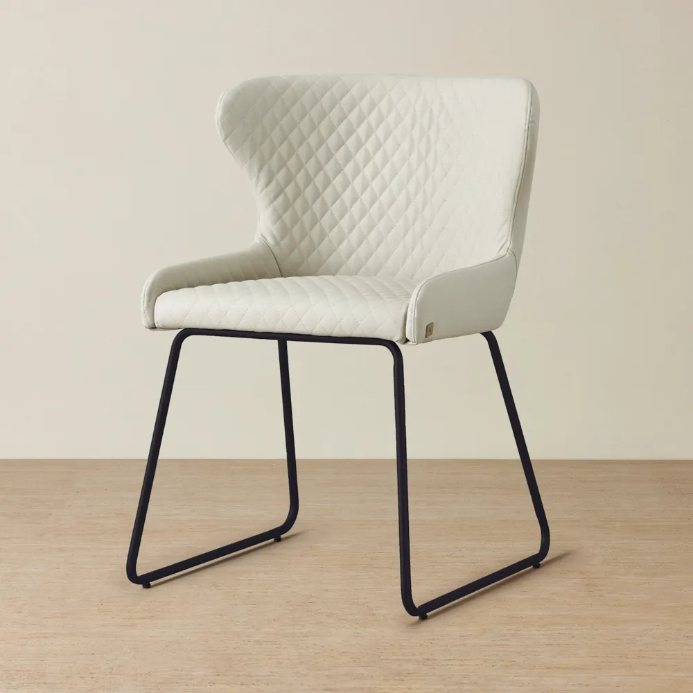Elevate your interiors with the Quinn Bar Stools, a splendid amalgamation of simplicity and elegance. The Quinn Cloud Grey Vegan Leather Bar Stool is more than just a seat - it's a statement of style, featuring a sleek seat upholstered in exquisite Cloud Grey vegan leather. The striking criss-cross motif adorning the fabric enhances the stool's allure, imparting a layer of opulence to its overall aesthetic. This unique presentation, with its art-deco-inspired design, seamlessly infuses a dash of vintage glamour into contemporary home settings.