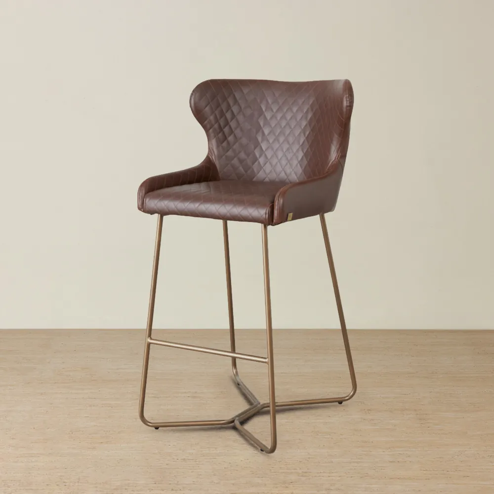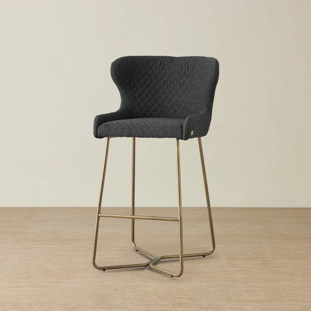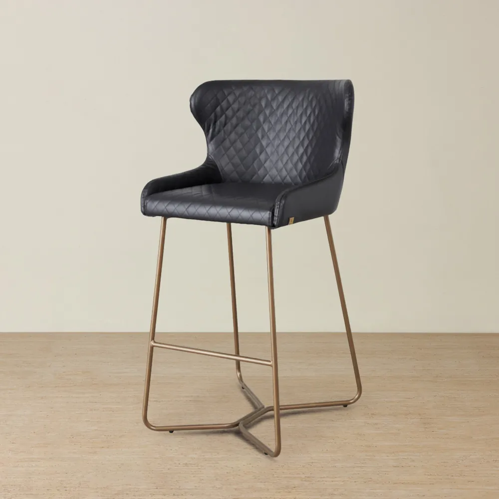 Elevate your interiors with the Quinn Bar Stools, a splendid amalgamation of simplicity and elegance. The Quinn Sand Beige Vegan Leather Bar Stool is more than just a seat - it's a statement of style, featuring a sleek seat upholstered in exquisite sand beige vegan leather. The striking criss-cross motif adorning the fabric enhances the stool's allure, imparting a layer of opulence to its overall aesthetic. This unique presentation, with its art-deco-inspired design, seamlessly infuses a dash of vintage glamour into contemporary home settings.