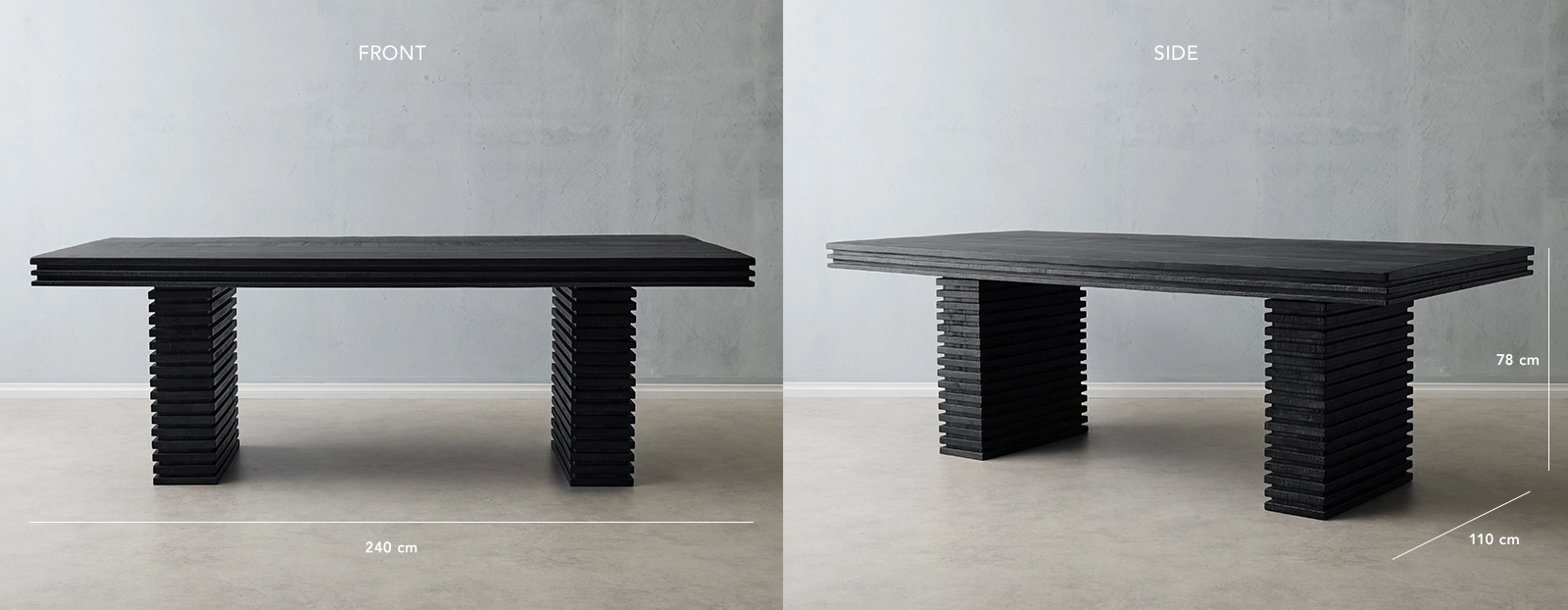 Not only does the Rafiki boast exceptional beauty, but it is also built to last. Mango Wood is known for its strength and durability, ensuring that the Rafiki will be a centrepiece in your dining area for years to come. Designed to accommodate up to 8-10 people, the Rafiki Black Mango Wood Dining Table is perfect for hosting larger gatherings. Gather your loved ones and create lasting memories as you enjoy the warm glow and timeless elegance of the Rafiki Dining Table. Pair with an ensemble of our beautiful dining chairs for a truly majestic spread. Find the perfect fit for your dining area as the Rafiki is available in small, medium, and large sizes.