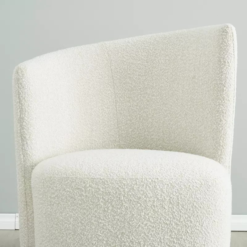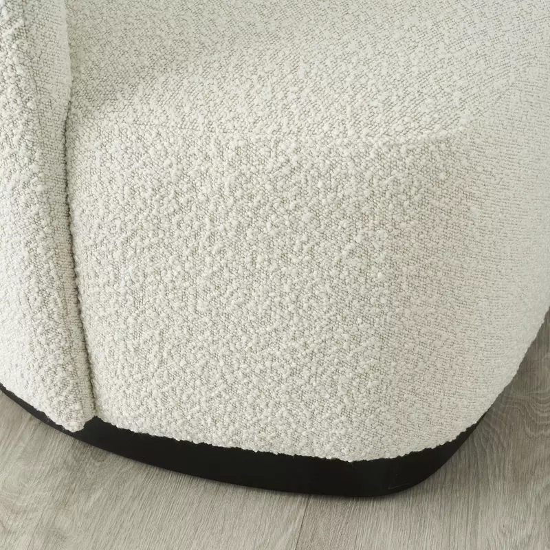 Upholstered in soft cream Boucle fabric, the Reina offers a dense foam-padded seat for ultimate comfort. Its black metal base provides stability and striking contrast, making it perfect to pair with its right and left apex variants.