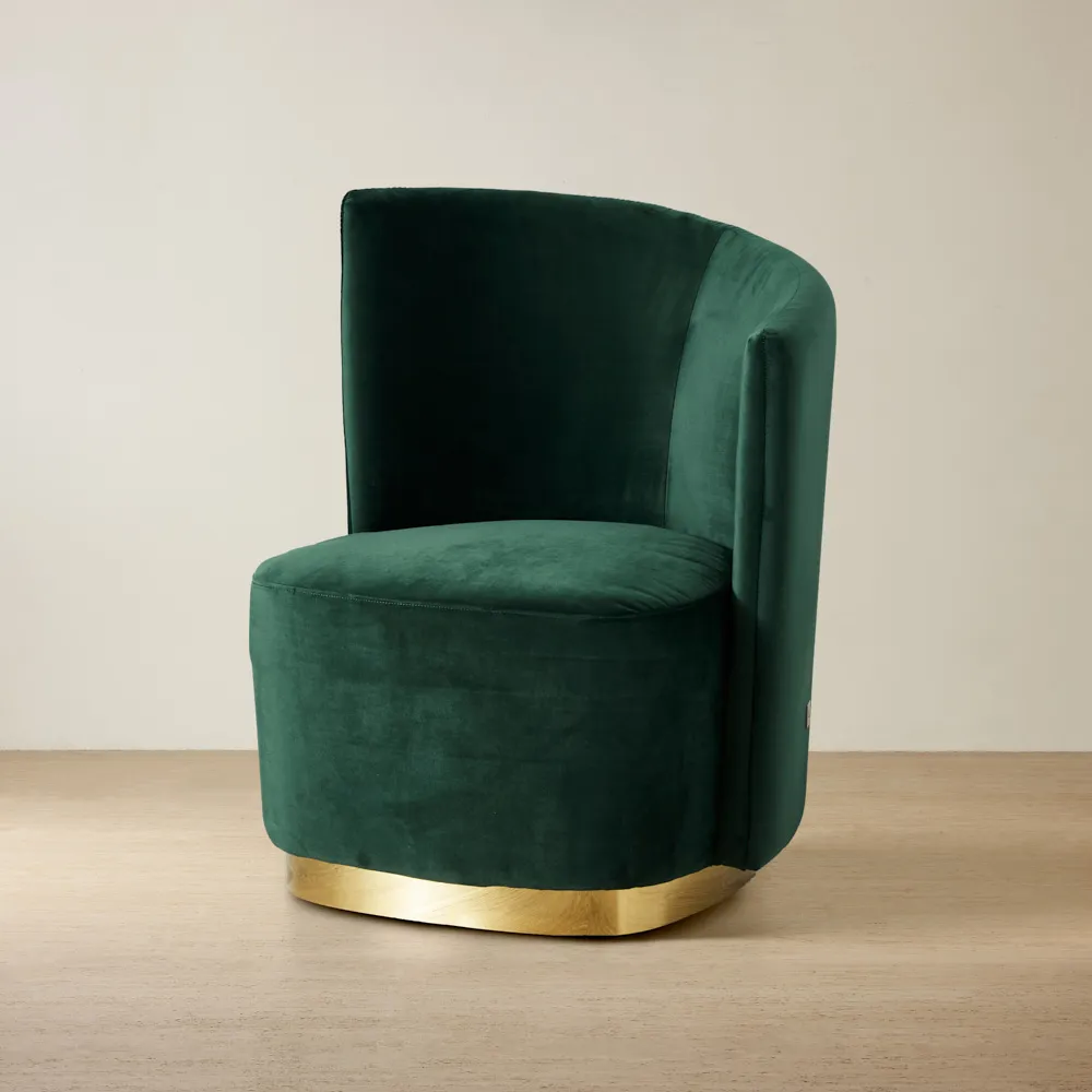 Upholstered in rich pine green velvet, the Reina offers a dense foam-padded seat for ultimate comfort. Its golden metal base provides stability and striking contrast, making it a stunning standalone piece or a perfect fit when paired with its right apex variant.