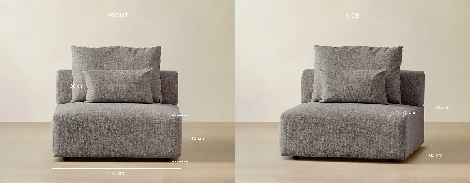With its clean lines and armless design, this piece integrates smoothly into any configuration. Includes matching cushions enhance both support and style, making it a versatile addition to your space. Ideal for compact living or expanding arrangements.