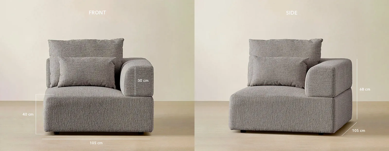 Clean lines and a structured corner silhouette give this piece a modern presence in any configuration. It comes with matching cushions that enhance comfort and maintain a cohesive look across your modular arrangement, perfect for compact spaces or expanding lounge setups.