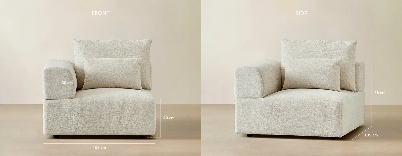 Clean lines and a structured corner silhouette give this piece a modern presence in any configuration. It comes with matching cushions that enhance comfort and maintain a cohesive look across your modular arrangement, perfect for compact spaces or expanding lounge setups.