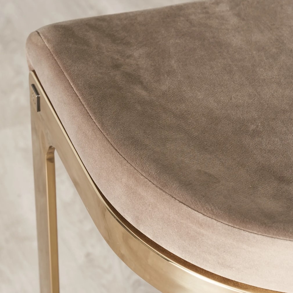 The Rouven Beige Velvet Bar Stool offers timeless simplicity beautifully entwined with distinctive design. Echoing the grandeur of the art deco era, this unique piece radiates an eccentric character that is destined to infuse an irresistible charm into your home bar or dining areas. At its heart is a stunning seat, meticulously upholstered in rich Beige velvet fabric. This sophisticated colour, combined with the luxurious feel of velvet, creates an eye-catching visual and tactile experience, making the Rouven Bar Stool a centrepiece in any setting.