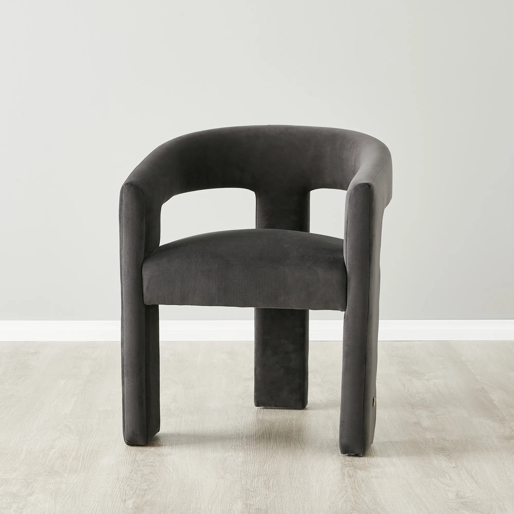 The frame of the Sabrina II is more than just a structural element; it's a part of the chair's charm. Its distinctive structure stylishly curves around the back, offering a comforting embrace during dining experiences. The most notable aspect of the Sabrina II, however, remains its innovative three-legged design, which adds a contemporary and artistic flair. The Sabrina is ideally paired in twos and matches beautifully with a range of stylish dining tables, enhancing the overall dining environment.