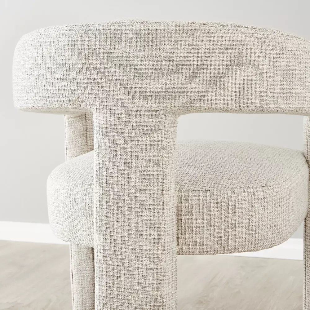 The frame of the Sabrina II is more than just a structural element; it's a part of the chair's charm. Its distinctive structure stylishly curves around the back, offering a comforting embrace during dining experiences. The most notable aspect of the Sabrina II, however, remains its innovative three-legged design, which adds a contemporary and artistic flair. The Sabrina is ideally paired in twos and matches beautifully with a range of stylish dining tables, enhancing the overall dining environment.