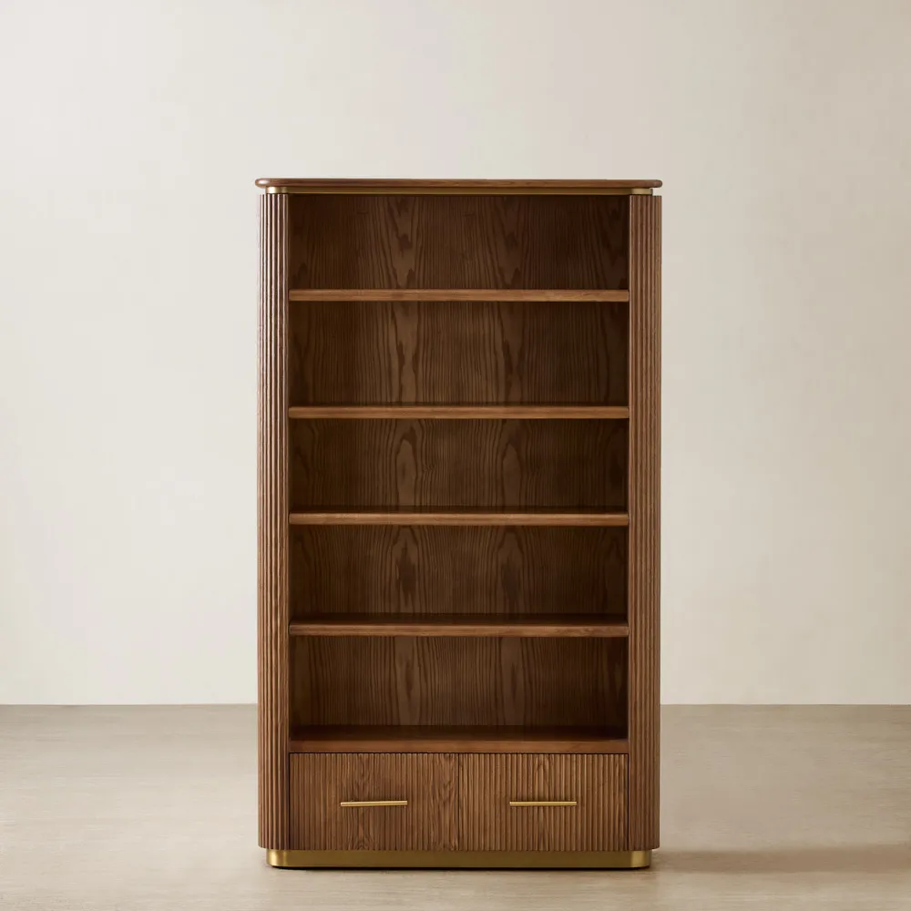 Five open shelves provide the perfect home for books, puzzles, and keepsakes, while two lower drawers keep the clutter tucked neatly away. Designed to adapt as your child grows, this bookshelf adds a sense of order and serenity to every stage of their imagination.