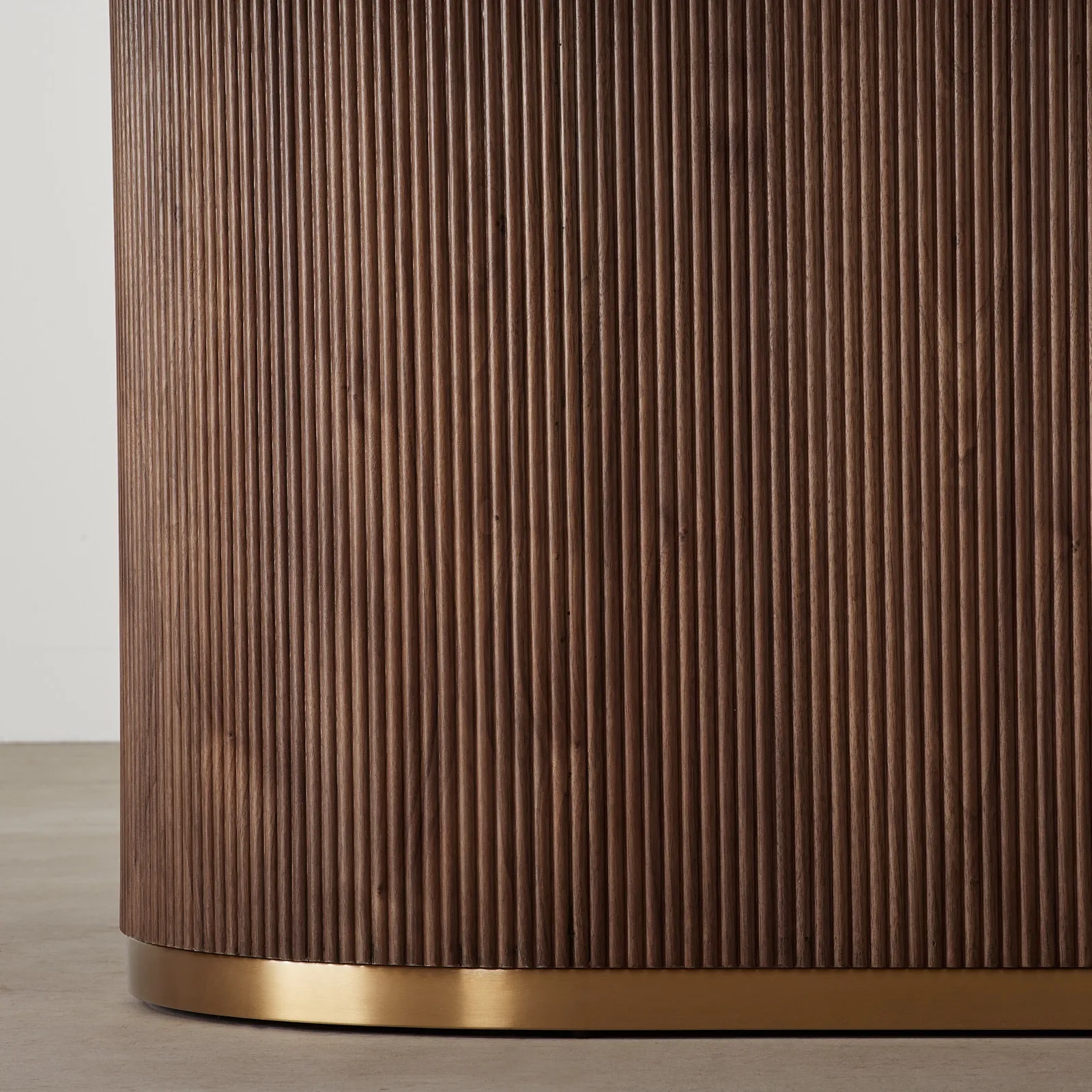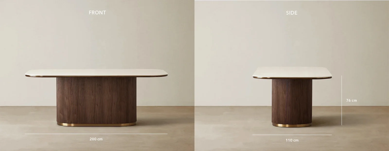 Through the San Pierre collection, Koala Living showcases Emily McAlister's unique ability to draw inspiration from the past and seamlessly integrate it into modern design, creating pieces that are both timeless and contemporary. During her travels through ancient streets, Emily was mesmerized by the vibrant fusion of history and modernity. Inspired by towering columns, intricate metalwork, and enchanting aromas, she meticulously wove these elements into the San Pierre collection. Each table in this collection features a sintered stone top with a travertine finish, beautifully reflecting the timeless charm of aged architecture. The base of each table, designed with walnut veneer creating vertical reeding, adds a dynamic and sophisticated presence. Emily's design philosophy places a strong emphasis on functionality and human connection. This is evident in the San Pierre collection, where each piece is crafted to enhance everyday moments and bring a touch of elegance to any space. The well-crafted tables in the collection are not only visually stunning but also highly practical, embodying Emily's vision of creating designs that are both beautiful and useful.