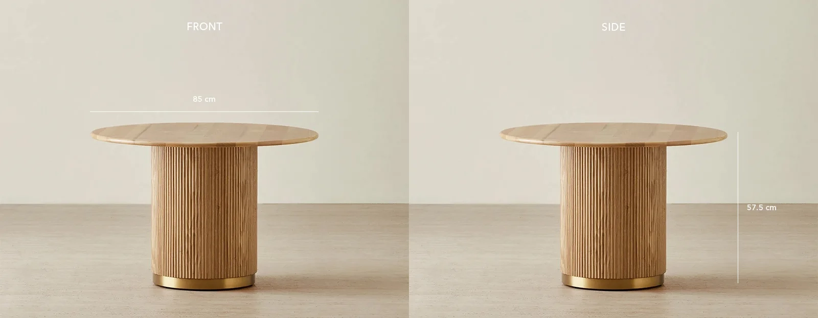 A fluted base adds texture and charm, anchored by a golden metal trim that gives it a polished, playful finish. Designed with soft edges, this table turns any space into a place for imagination and connection.