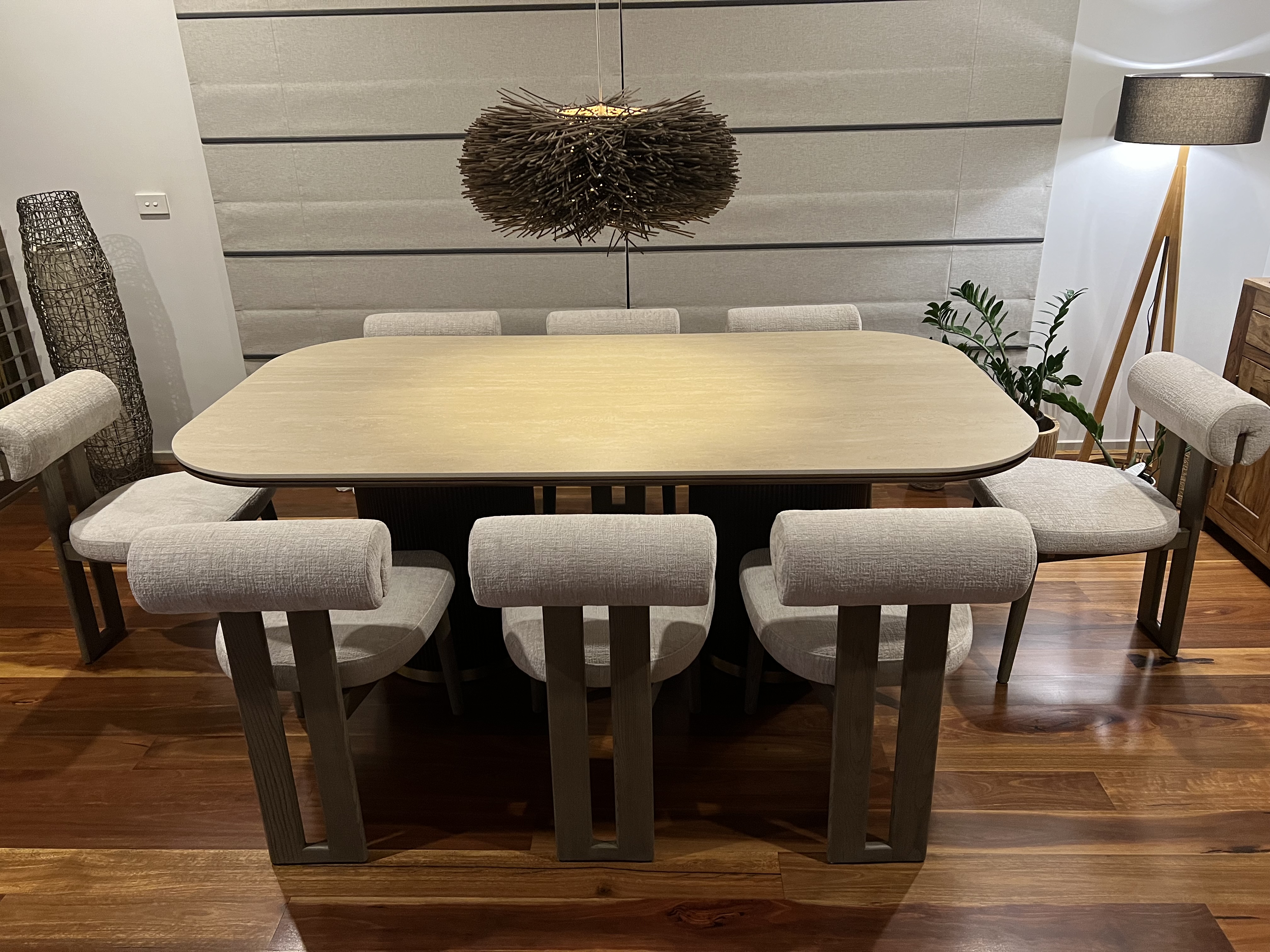 The dinning table and chairs blend in really well with my living room. The table is very easy to clean and the chairs are comfortable. The staff did a great job assembling the table. Highly recommend Koala Living furnitures.