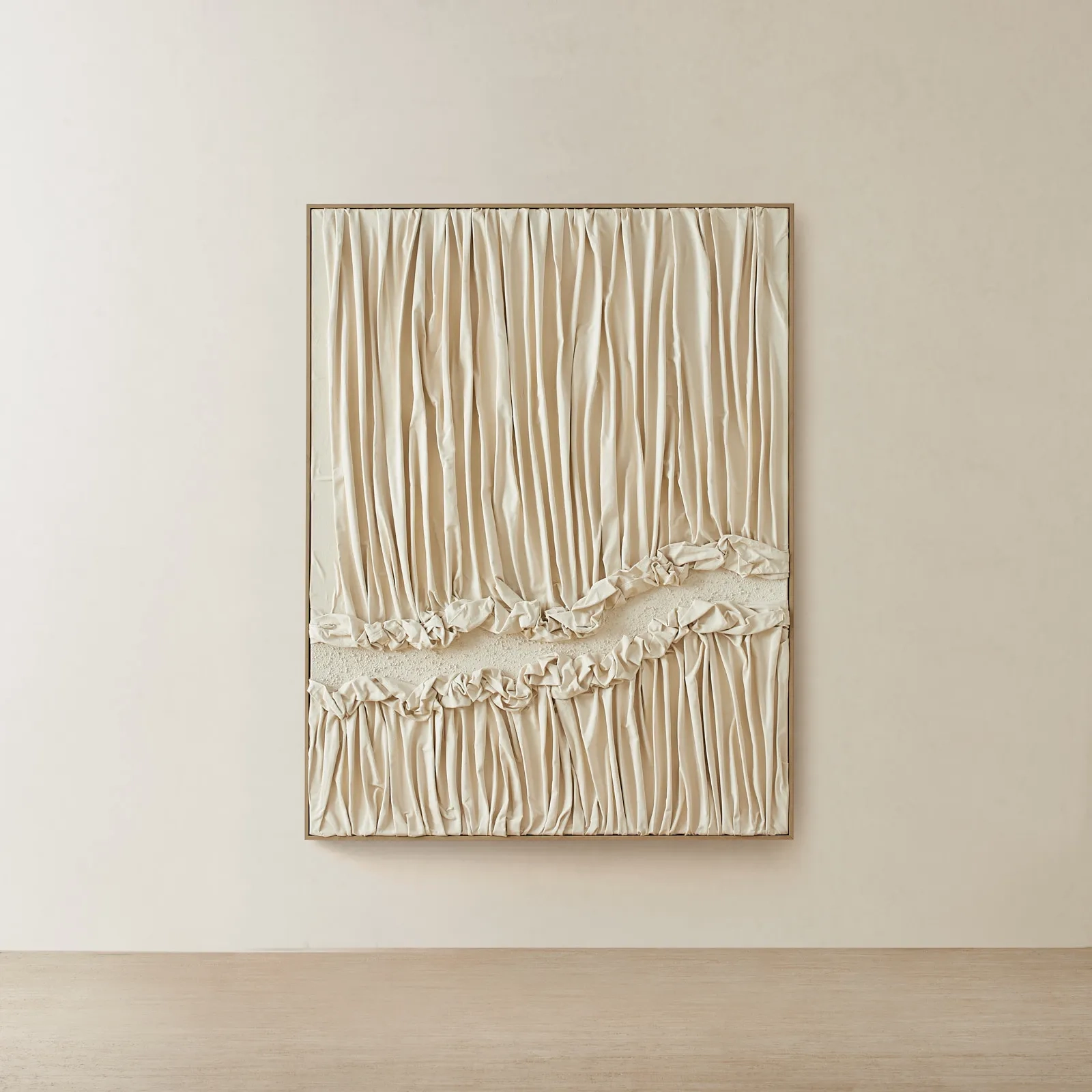 The Sandy Glimpse Painting captures the delicate interplay between texture and form. The piece features soft, layered fabric that creates a subtle, flowing rhythm across the canvas.