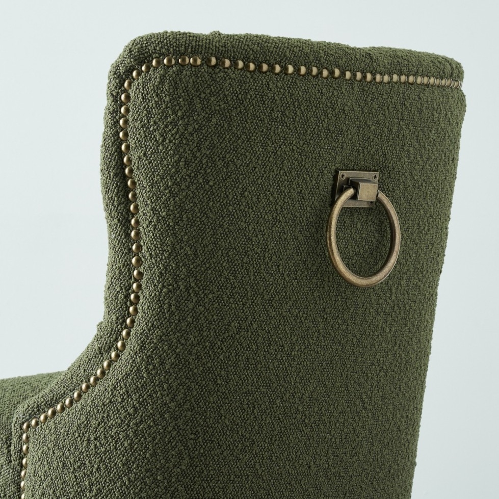 Introduce a touch of opulent comfort to your home bar and dining area with the exquisite Saxon Olive Green Boucle Bar Stool. Succumb to the irresistible allure of its inviting aesthetic, beautifully showcased by the richly textured boucle fabric seat. The Saxon Olive Green Boucle Bar Stool is designed to envelop you in a luxurious seating experience. Beneath the dreamlike boucle fabric lies dense foam padding, meticulously selected to provide optimal comfort. Crafted with the utmost care, the Saxon's legs are a testament to both style and functionality.