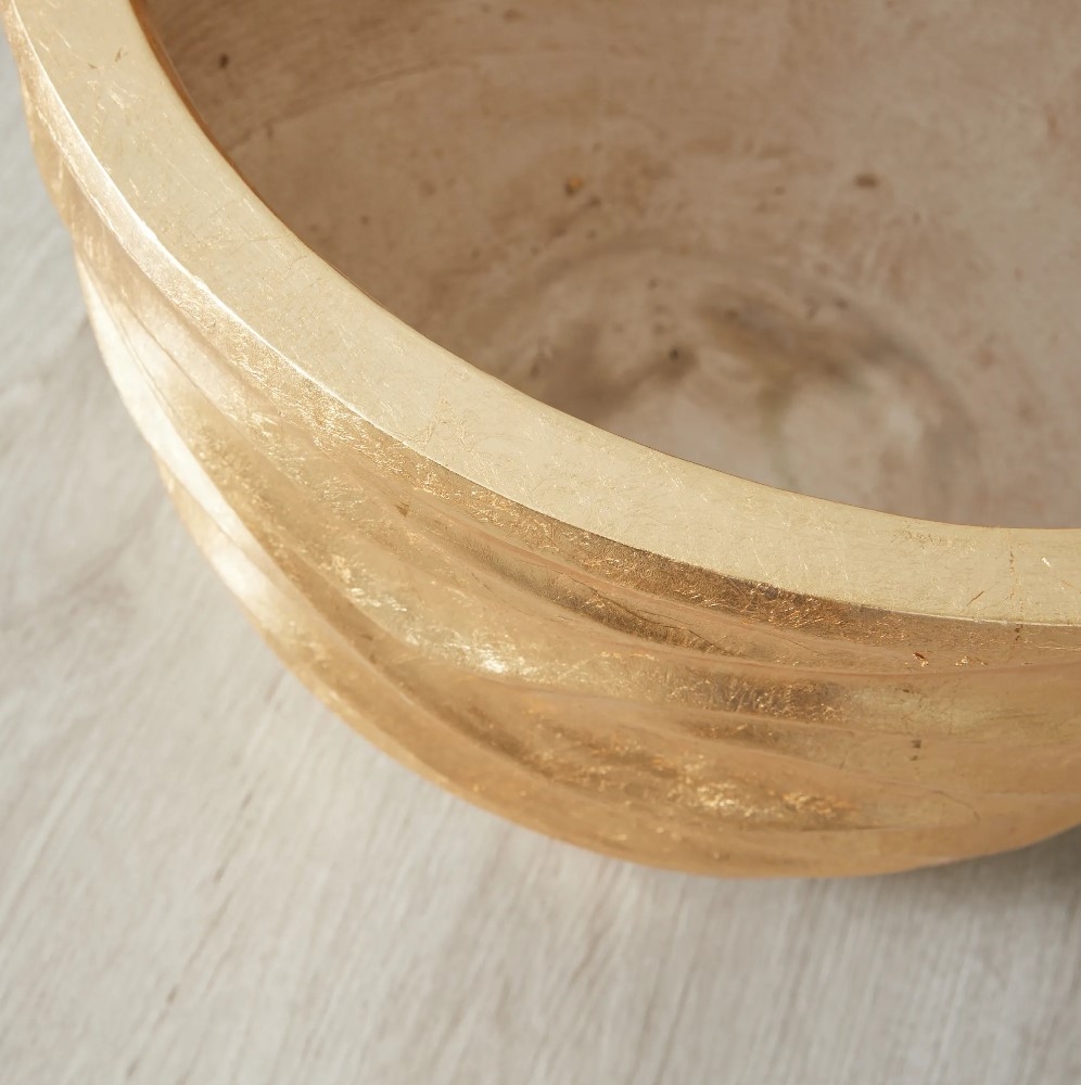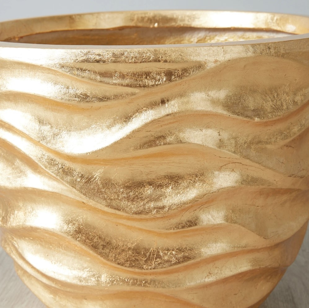 Dive into the depths of exquisite artistry with the Seawater Tactile Gold Vase. Masterfully sculpted, this piece is an ode to the mesmerizing dance of the waves and the treasures of the ocean. It gleams with a golden-coloured lustre, a luminance that resonates beautifully with the fluidity of its design.
