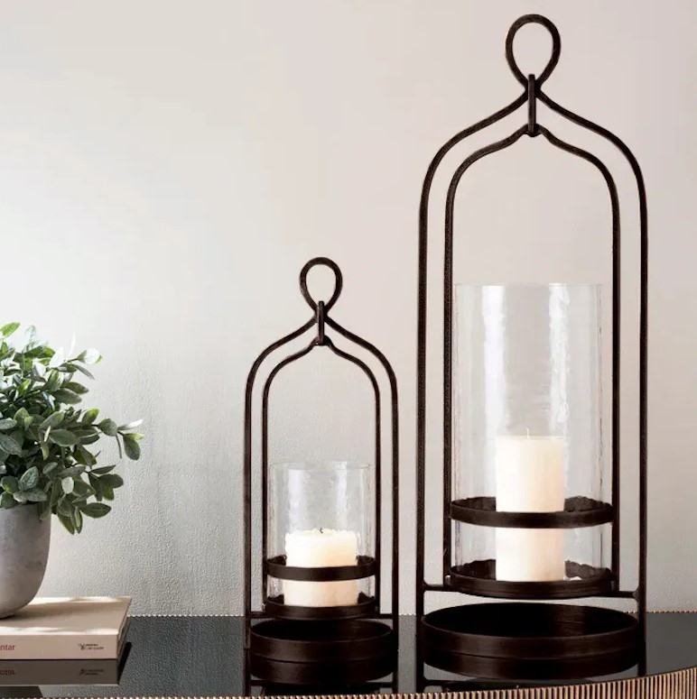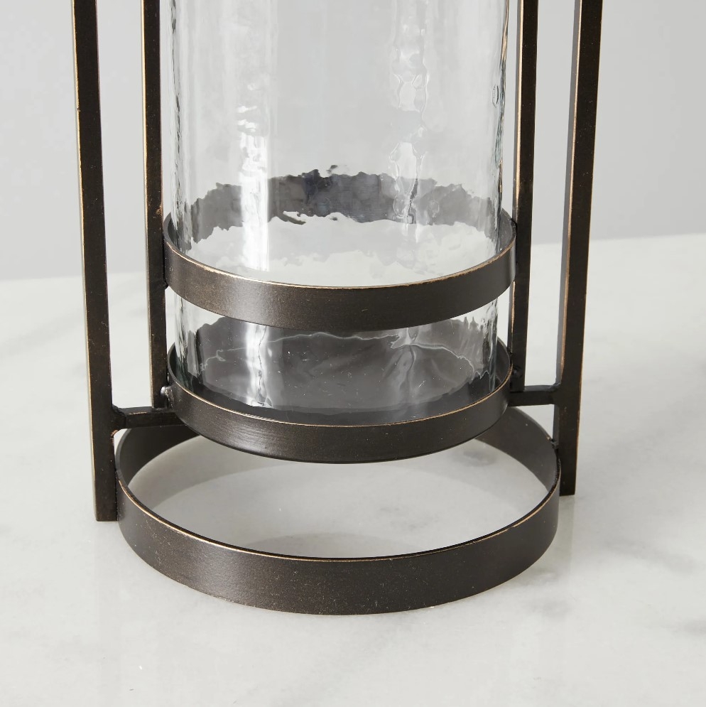 What truly distinguishes the Shania Lantern, however, is its meticulously crafted metal frame. Gilded in a rich dark bronze hue, this frame not only provides a striking contrast to the luminescence of the candle within but also boasts a graceful slim design, making it a statement piece in any decor setting. Additionally, the incorporation of a handle in its design ensures ease of transport, allowing users to effortlessly move the lantern from one space to another.