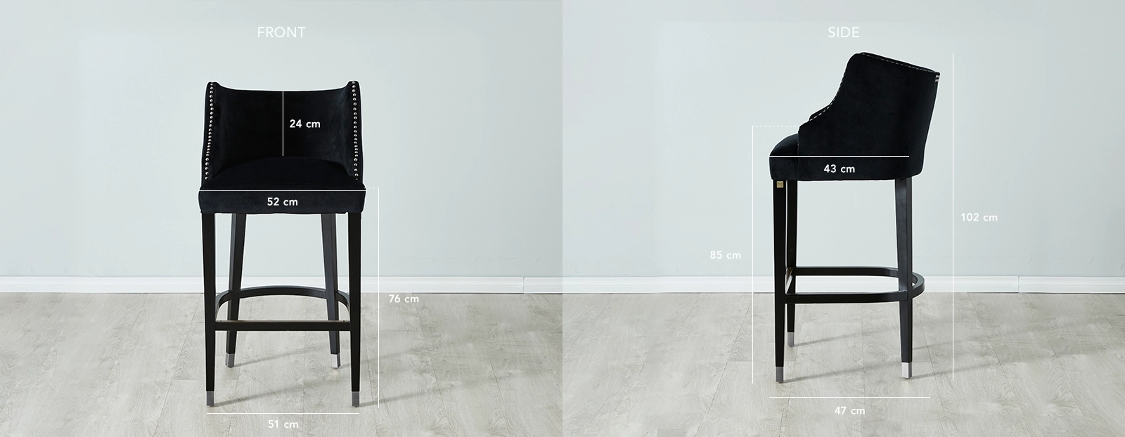 Elevate your home bar or dining area with the exquisite Simone Black Velvet Bar Stool, a symbol of unrivalled stylish elegance. Inspired by classic design, this stool boasts a seat that exudes sophistication, intricate details, and a stunning colour palette. Indulge in the utmost comfort as you wine and dine luxuriously nestled in the tub-chair-inspired seat. The seat is thoughtfully designed with foam padding, ensuring a plush and cozy seating experience. Wrapped in rich Black velvet fabric, it exudes opulence and invites you to relax and savour every moment spent in its embrace.