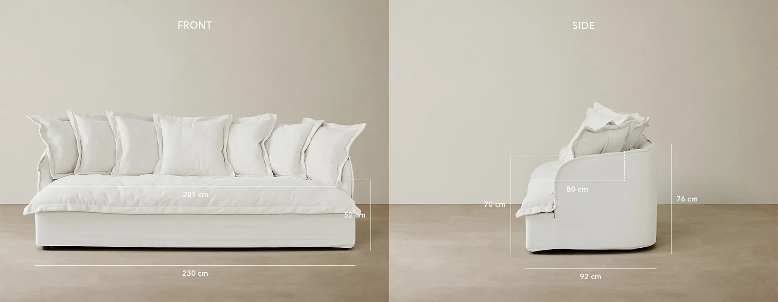 The Sorrento 3-Seater Cloud Sofa combines Hamptons-inspired elegance with comfort and practicality, featuring an inward-curving back frame and a trove of plush cushions.