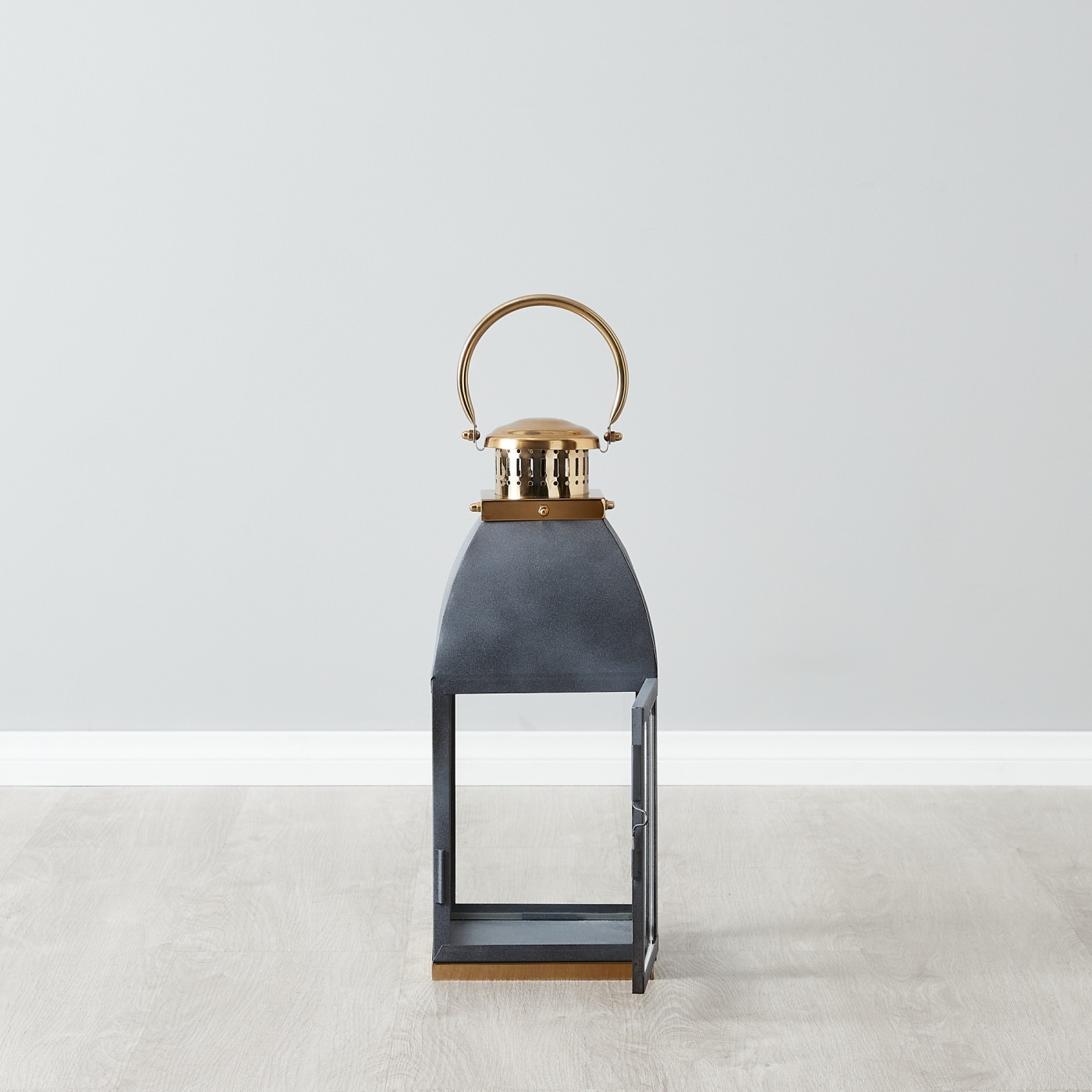 The Stefan allows the candlelight to pass through with its clear glass borders. The Roof of the lantern features an exhaust that also boasts a luxurious golden shade. The handle itself is a work of art and is securely fastened to allow you to carry the lantern to any room around your home. The Stefan Black Stainless Steel Lantern comes in a large and medium-sized variants.