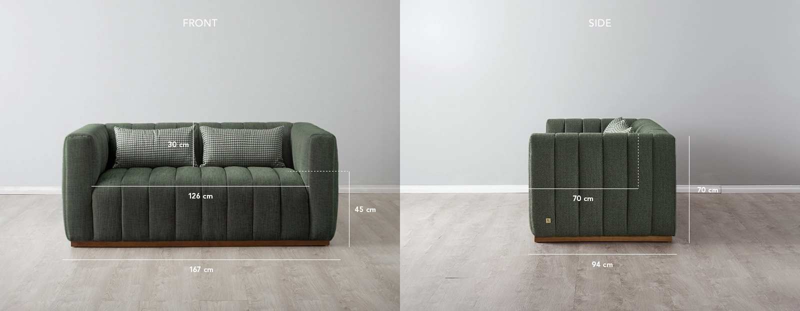 The Storme Kombu Green 2-Seater Fabric Sofa adds an inviting touch to your living area with its classic tuxedo design wrapped in contemporary fabric. Enveloped in high-density foam, it offers a cocoon of comfort.