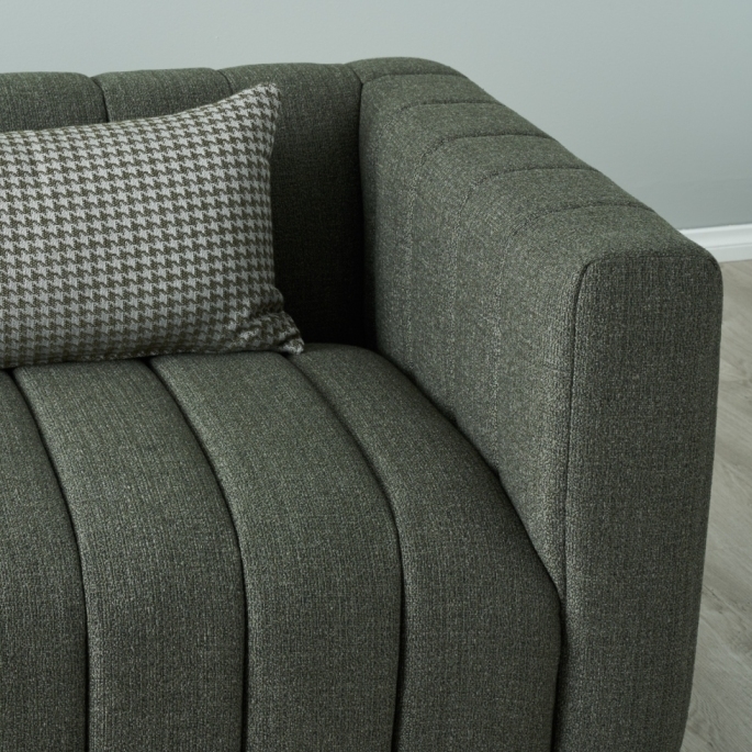 The Storme is adorned with vertical tufts, creating a plush and elegant appearance. Its calming Kombu Green tones add a serene aesthetic, making it an ideal centerpiece for the busier areas of your home.