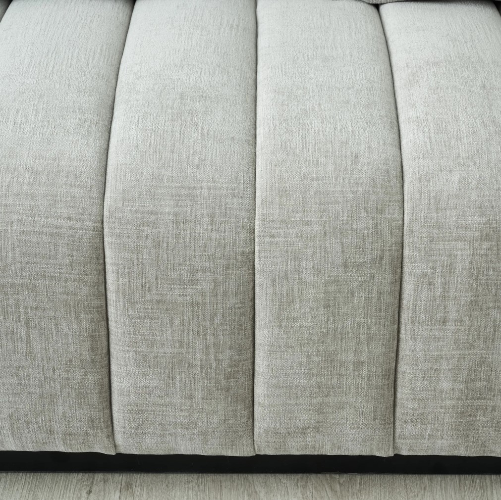 The Storme is adorned with vertical tufts, creating a plush and elegant appearance. Its calming Vintage Grey tones add a serene aesthetic, making it an ideal centerpiece for the busier areas of your home.