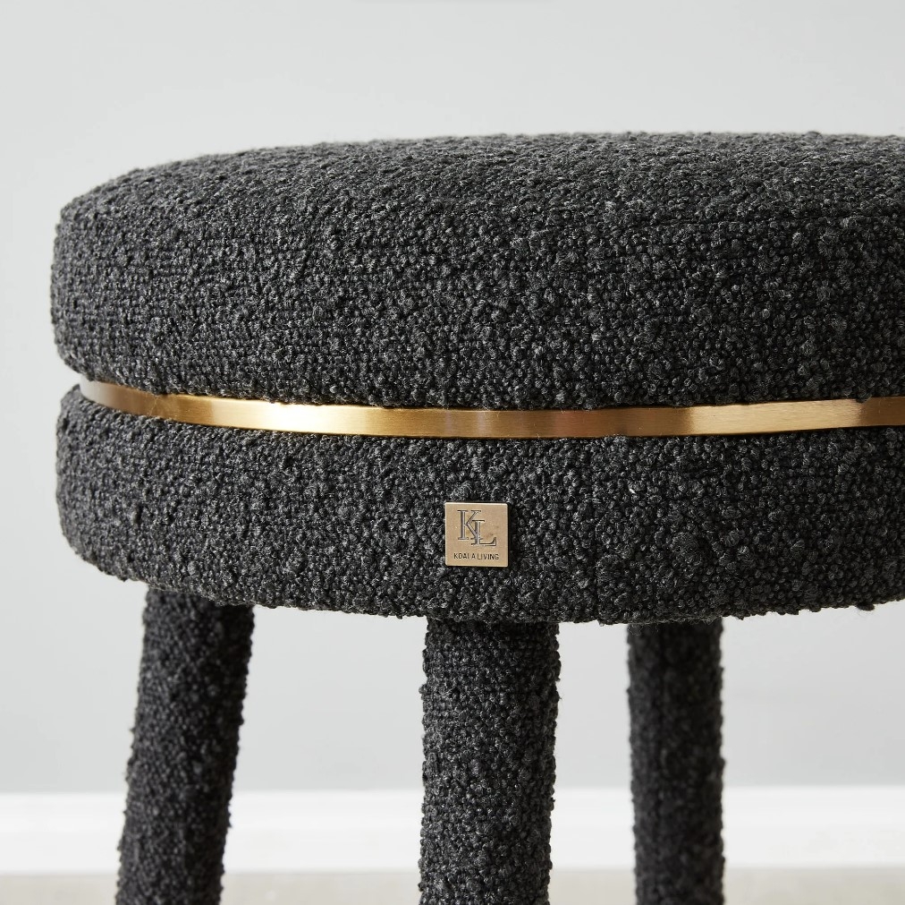 Add a luxurious seat to your dining areas with the Sylvie Black Boucle Counter Stool. This majestic seat is a true art-deco-inspired delight as it impresses in black and gold. Sit comfortably on its plush and inviting seat, upholstered in inviting high-quality fabric. A dream-like offering of black Boucle covers the seat with its comfortable softness.