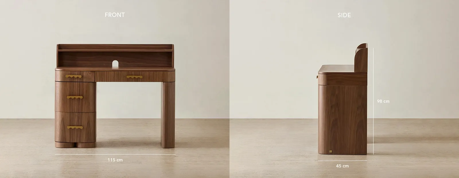 Three roomy drawers and a side compartment offer storage for supplies, and creative treasures. With rounded edges and golden handles adding a playful touch, this desk turns every study session into moments of focus, and imagination.
