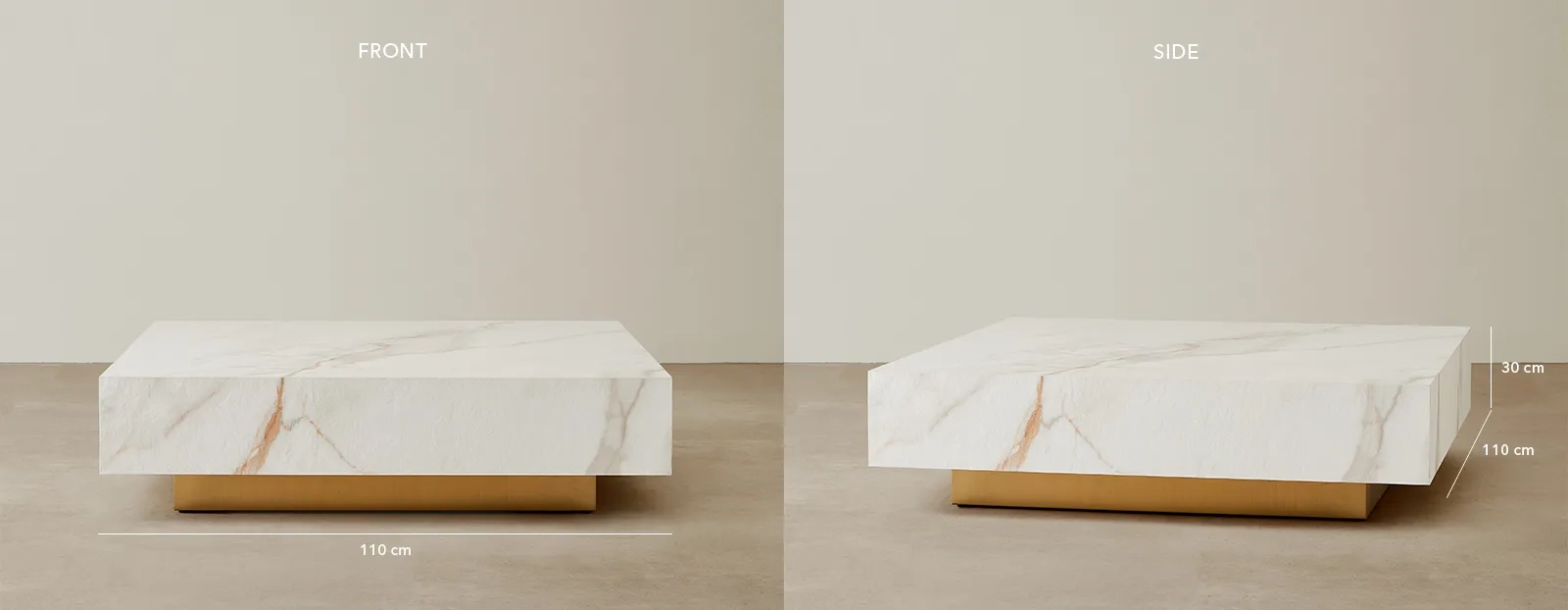 Thames Calacatta Oro - White Sintered Stone Square Coffee Table