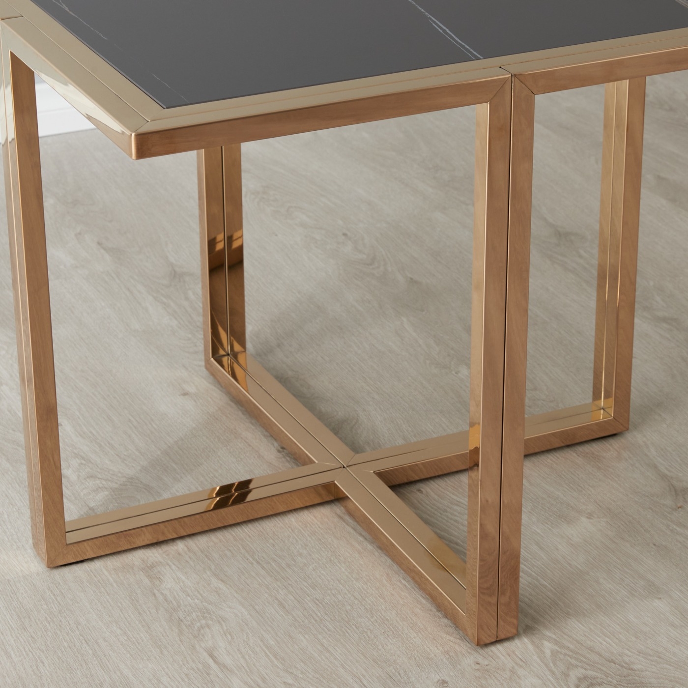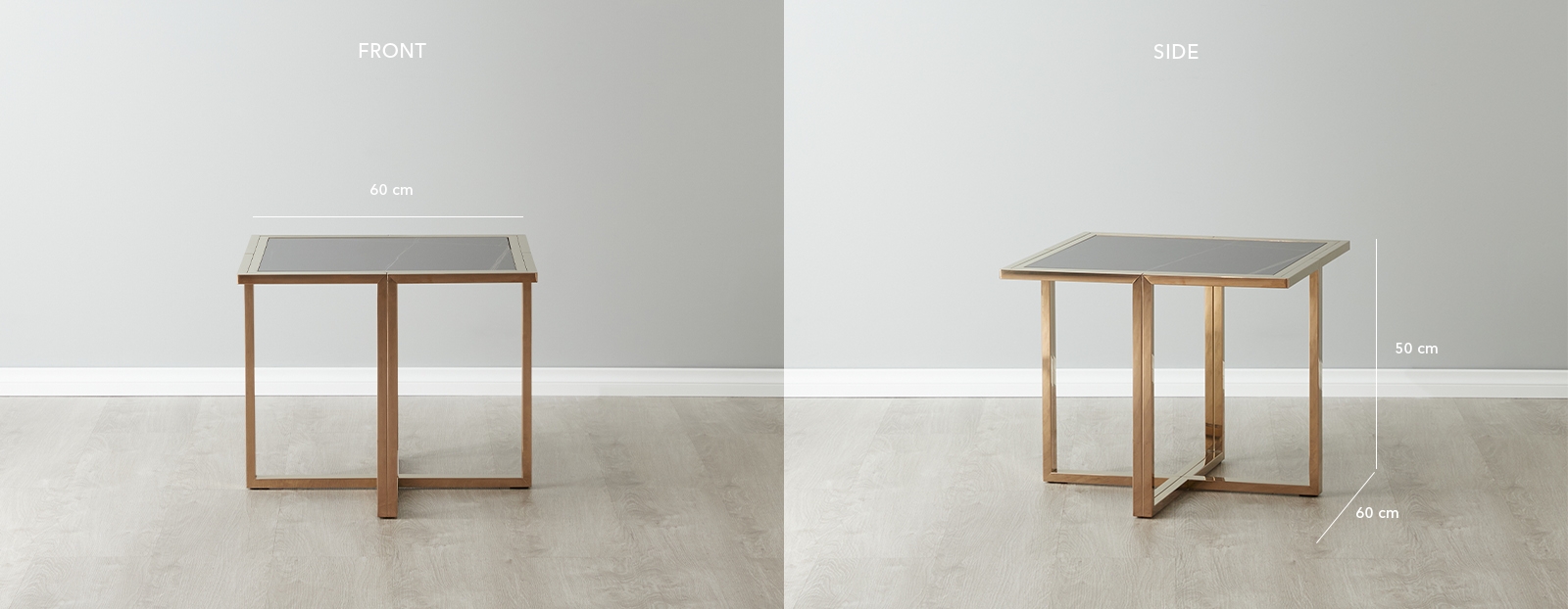 Position it near a chair or sofa to keep your valuables within arm's reach. Providing support to the Sintered Stone Tabletop is a masterfully crafted frame of stainless steel. It features four bold corners that converge at the Titus' centre. Its open design plays with light and space to add intrigue. Pair this modern piece with one of our floor rugs and sofas.