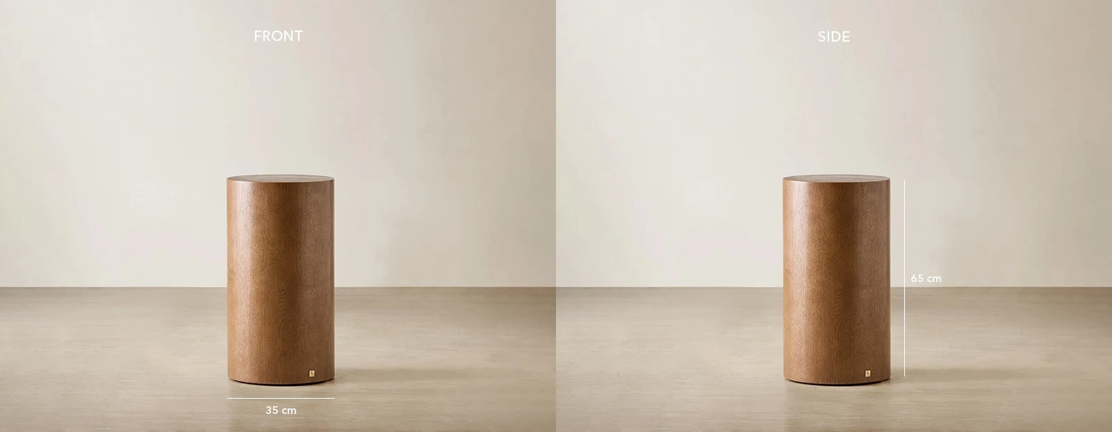 The Trento Plinth features a clean cylindrical form that brings quiet structure to any space. Its minimal silhouette allows it to function effortlessly as a display stand, side table, or sculptural accent.