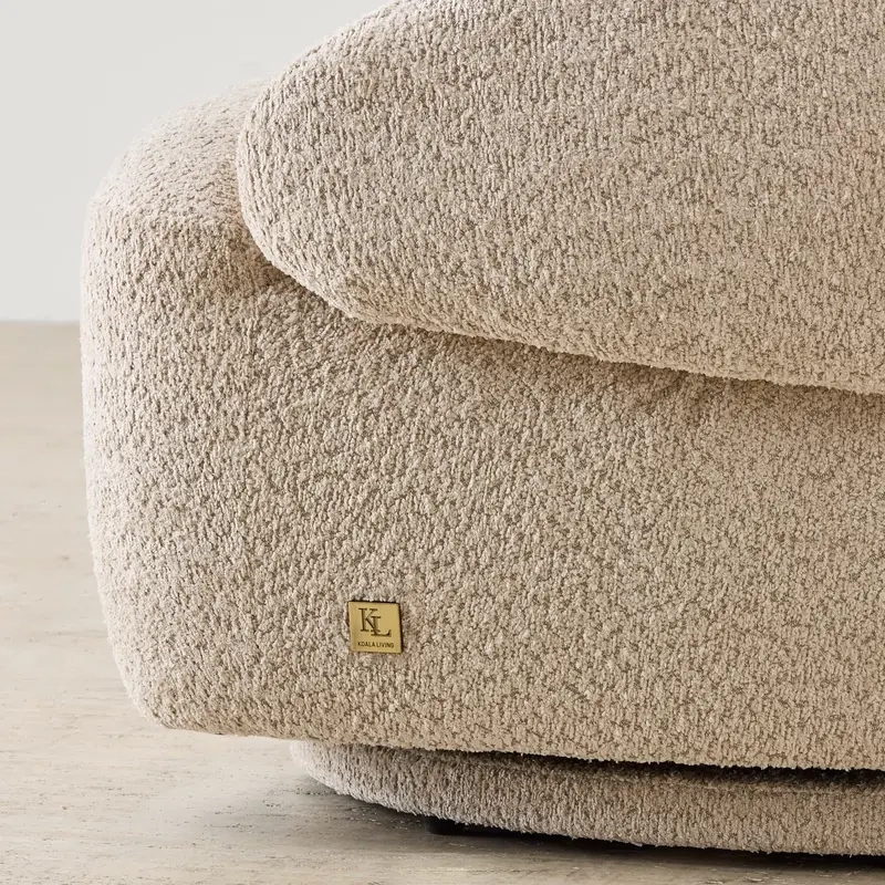 The textured woven fabric in a mid beige tone adds natural warmth and subtle depth to the design. Balanced and sculptural, the Verage offers both timeless style and effortless comfort.