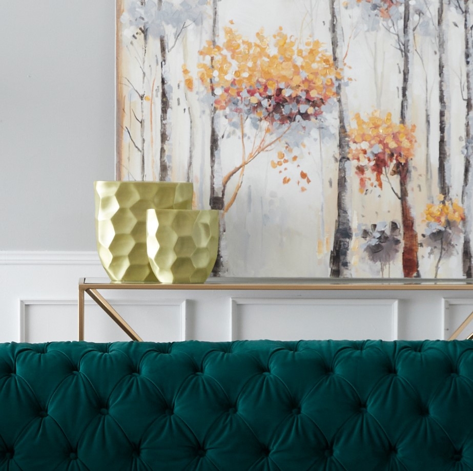 The vase is further enhanced by its vibrant bright yellow shade, a choice that adds a pop of cheerful color to any room. This striking color is complemented by the vase's geometric motif, which is sculpted with precision and care. The geometric design contributes to the vase's modern look and feel, turning it into a focal point wherever it's placed.