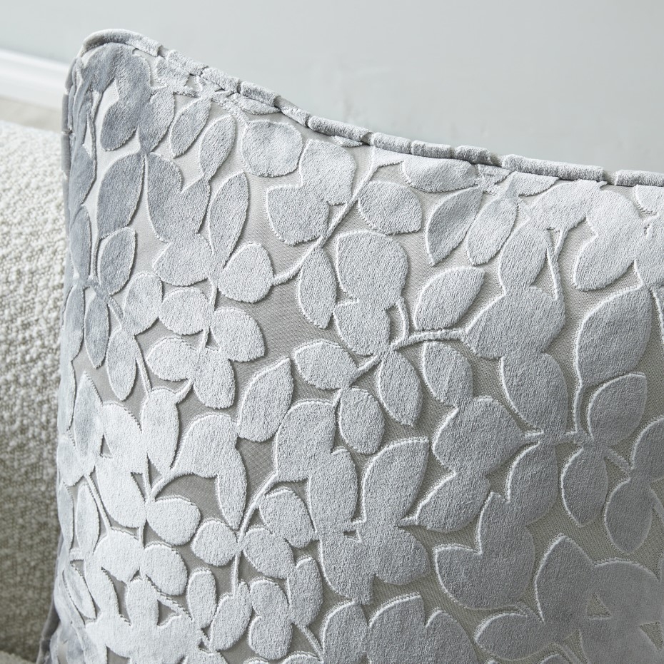 Crafted with the softest velvet, the Vesper Cushion offers an unmatched tactile experience, inviting you to sink into its sumptuous embrace. The true charm of this cushion lies in its stunning motif – a delicate silhouette of leaves, artistically rendered in elegant shades of grey.