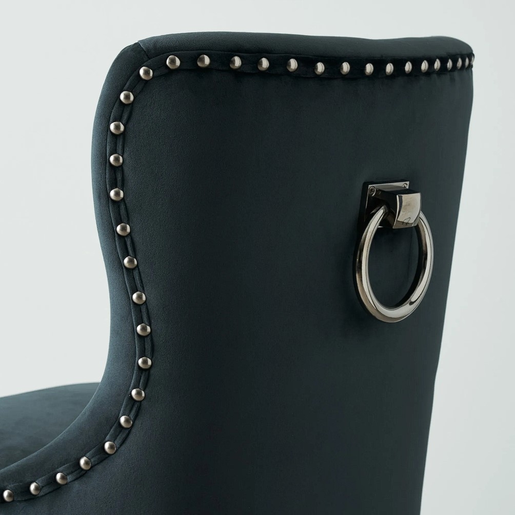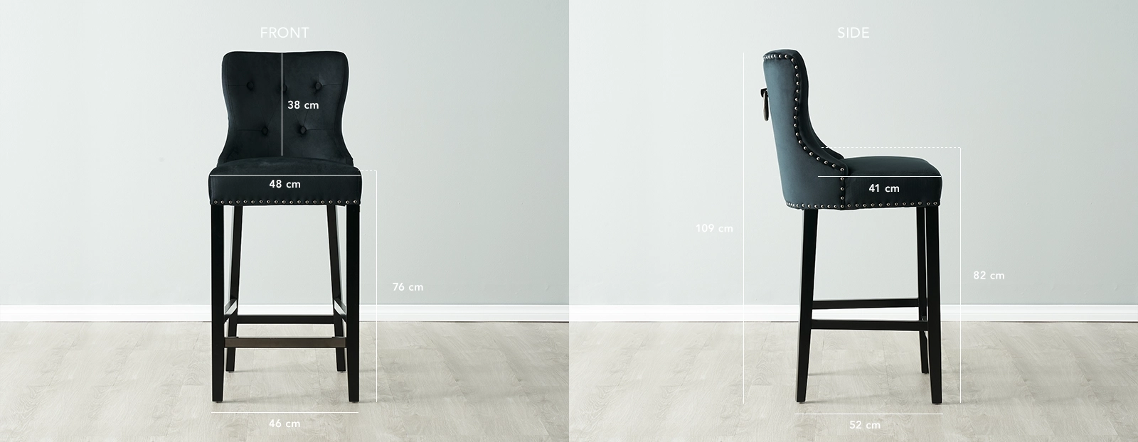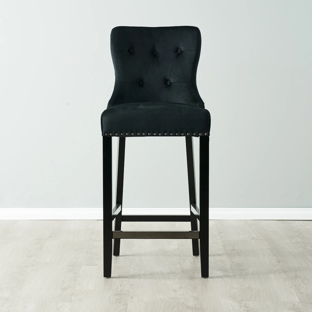 Experience the epitome of sophistication and comfort with the exquisite Viktor Black Velvet Bar Stool. This remarkable piece will transform your home bar and dining area into luxurious spaces, exuding elegance and refinement. Wrapped in high-quality black velvet fabric, the seat indulges your senses with its rich texture and luxurious feel. The velvet fabric adds a touch of opulence, elevating the overall aesthetic of the stool. The seat's backrest is adorned with button tufts, further accentuating its sophisticated allure.