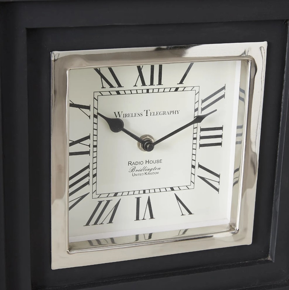 The Williams table clock is a testament to timeless elegance, seamlessly melding vintage charm with sophisticated design elements. At its pinnacle, a stylish handle enhances its portability, while the intricate Nickel detailing and cascading black frames enrich its visual appeal.