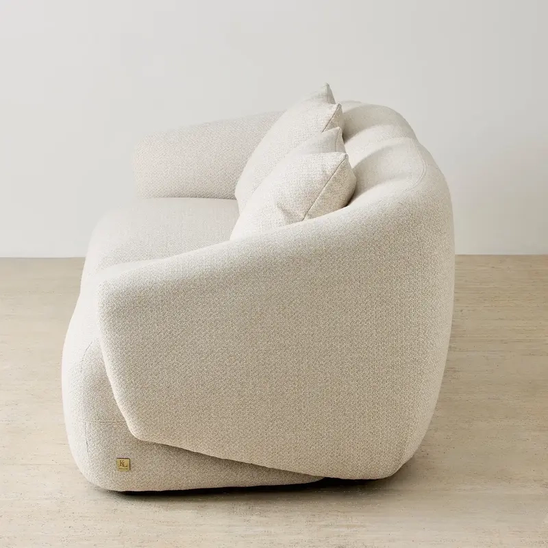The Willow 2 Pieces Modular Sofa is upholstered in an ivory beige woven fabric that offers a refined texture and a soft, natural tone. The deep seats and gently contoured form create a relaxed, sculptural silhouette.