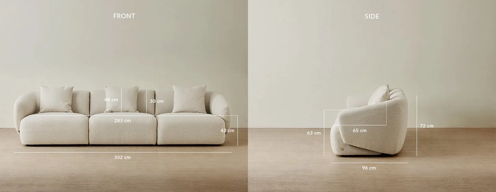 The Willow 3 Pieces Modular Sofa is upholstered in an ivory beige woven fabric that offers a refined texture and a soft, natural tone. The deep seats and gently contoured form create a relaxed, sculptural silhouette.