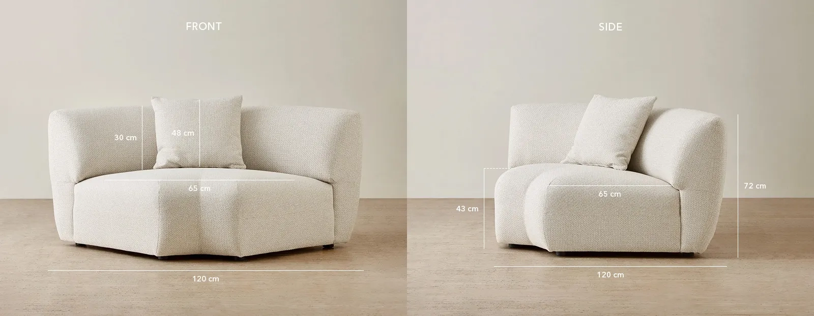 Designed as part of the modular Willow collection, this corner seat can be styled alone as a statement piece or connected with other modules to form your ideal arrangement.