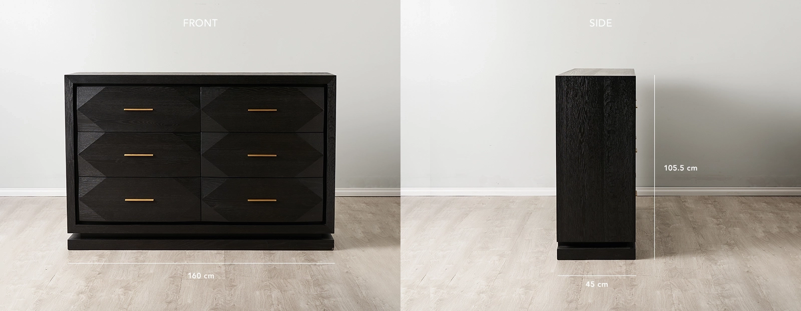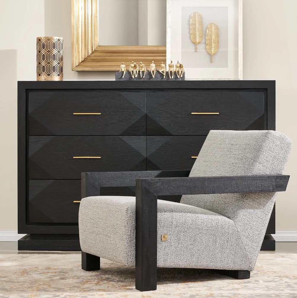 Add personality to your space as the Xandra's top section offers enough room to decorate with figurines, paintings and table lighting options. Stay organized as you store your cutlery, plates and more on the Xandra's six spacious pull-out drawers. Pair the Xandra Black Oak Veneer Sideboard with one of our majestic dining tables for a truly luxurious dining room. The Xandra Black Oak Veneer Sideboard also comes in a Dark Walnut Brown coloured variant.