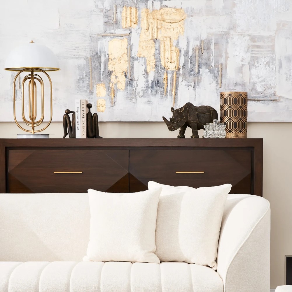 Add personality to your space as the Xandra's top section offers enough room to decorate with figurines, paintings and table lighting options. Stay organized as you store your cutlery, plates and more on the Xandra's six spacious pull-out drawers. Pair the Xandra Dark Walnut Veneer Sideboard with one of our majestic dining tables for a truly luxurious dining room. The Xandra Dark Walnut Veneer Sideboard also comes in a Black Oak coloured variant.