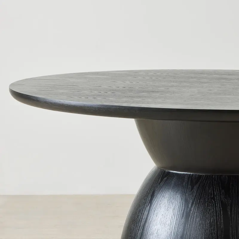 The Xavier Walnut Brown Wooden Round Dining Table embodies modern rustic elegance. Its sculptural pedestal base and rounded walnut brown top bring a sense of warmth and natural beauty to the dining space.