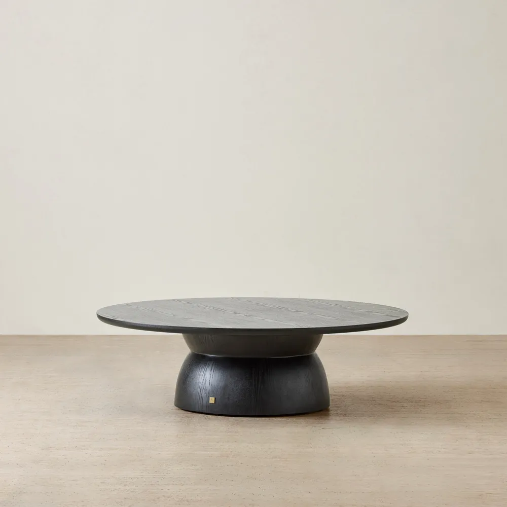 The Xavier Coffee Table embodies sculptural simplicity with its smooth curves and solid presence. Crafted from warm walnut brown wood, its rounded form brings a natural, grounding element to the living space.